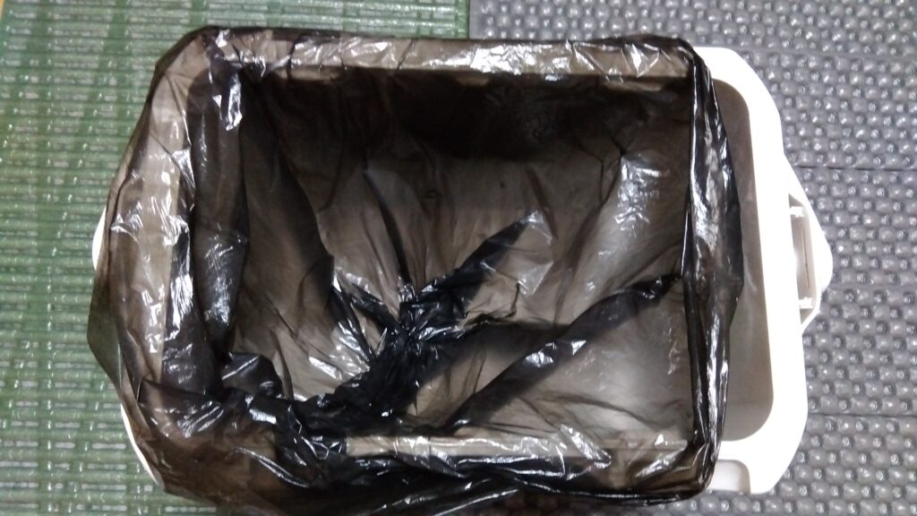 1. ビニール袋を1つカットして、まずトイレなり箱などにセットする