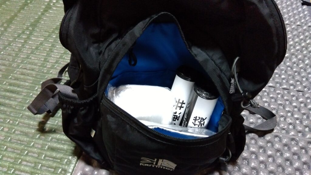 20リットルの小型リュックの外ポケットに50回分が収納できた